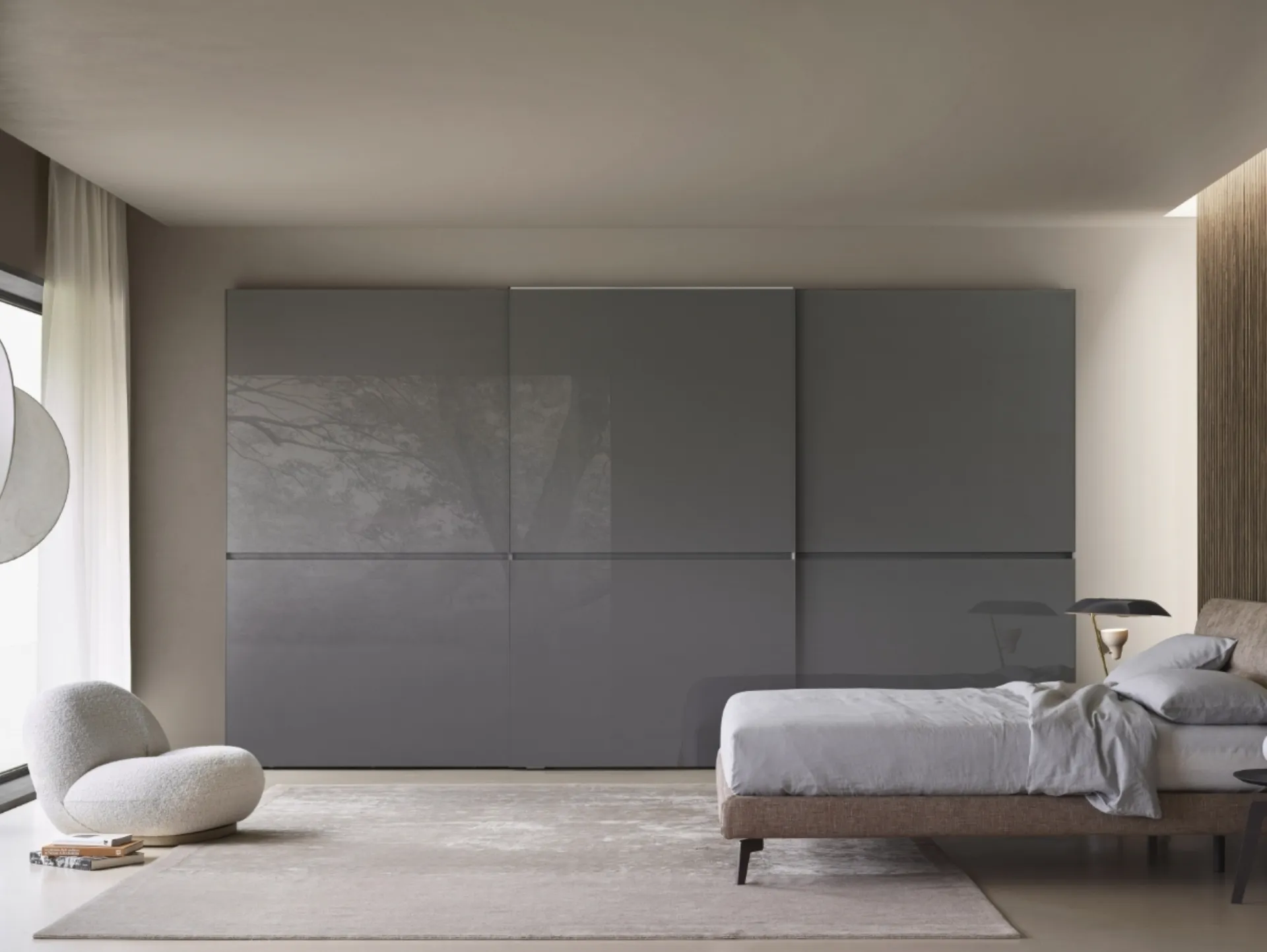 Se vuoi armadi a muro con ante scorrevoli, clicca e scopri l'armadio Horizontal Vetro di Sangiacomo in vetro.