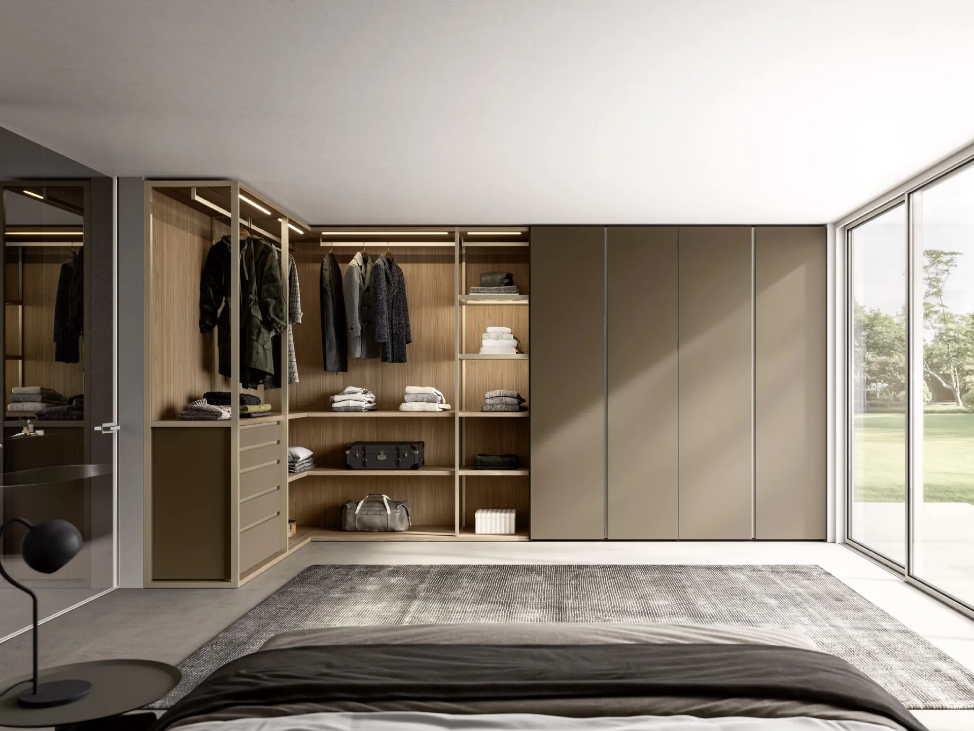 Cerchi un'armadiatura in laccato opaco? Clicca e scopri armadiature ad angolo con ante battenti di Sangiacomo.