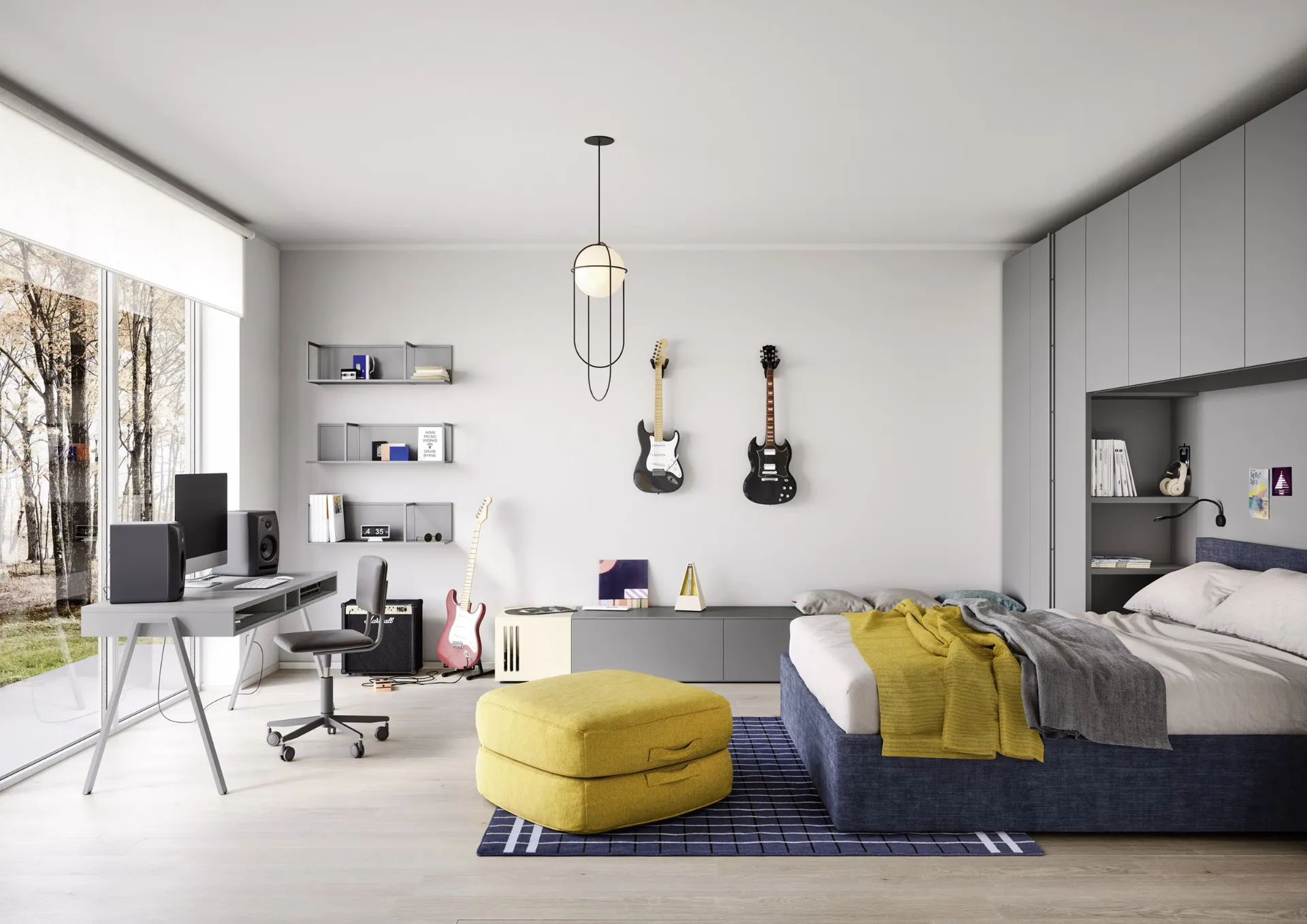 Con questa cameretta Arial Nidi, tra le soluzioni a ponte, potrai ammobiliare stanze moderne per ragazzi.