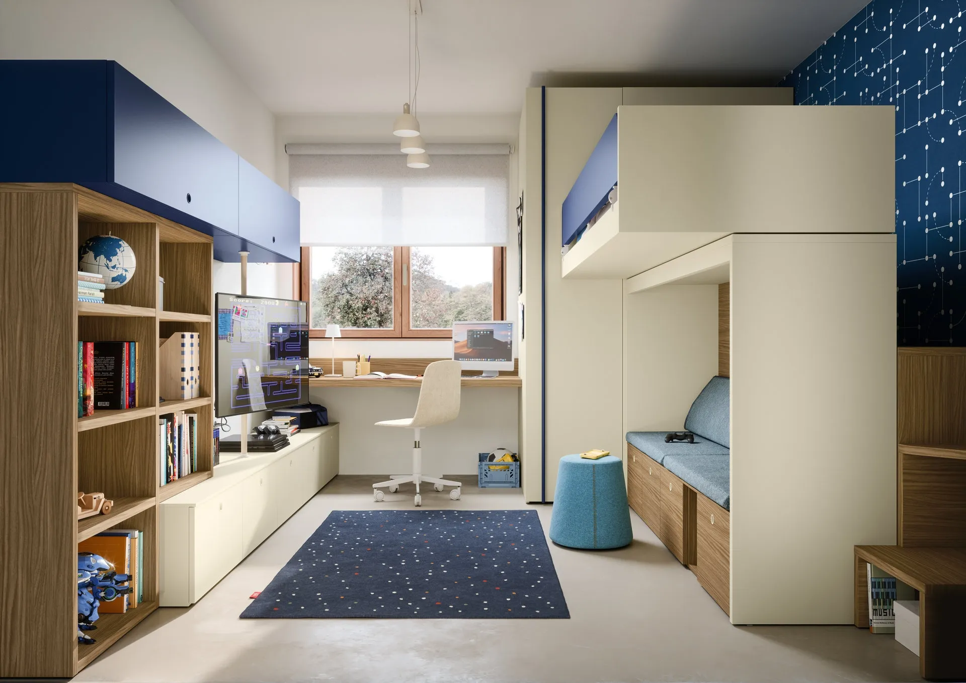 I nostri bambini trascorrono parecchie ore delle loro giornate nelle loro camere da letto: rendile adatte per fare i compiti, giocare e rilassarsi quotidianamente. Le Camerette dei nostri bambini sono l'ambiente in cui diventeranno grandi giocando e sognando, perciò è imprescindibile che lo spazio sia agevole. Nel nostro punto vendita ti guidiamo dalla scelta dell'arredamento per la camera alla progettazione del luogo dove i tuoi bambini cresceranno, giocando e sognando. Presentiamo nel nostro showroom molteplici Camerette con letti a castello moderne per bambini del marchio, ideali per seguirli durante la loro crescita.