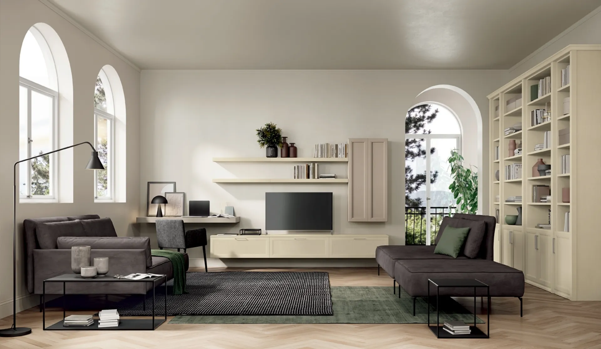 Se desideri ultimare un soggiorno pratico e dinamico dalle linee classiche, ti presentiamo la parete attrezzata Arcadia AS004 Colombini Casa.