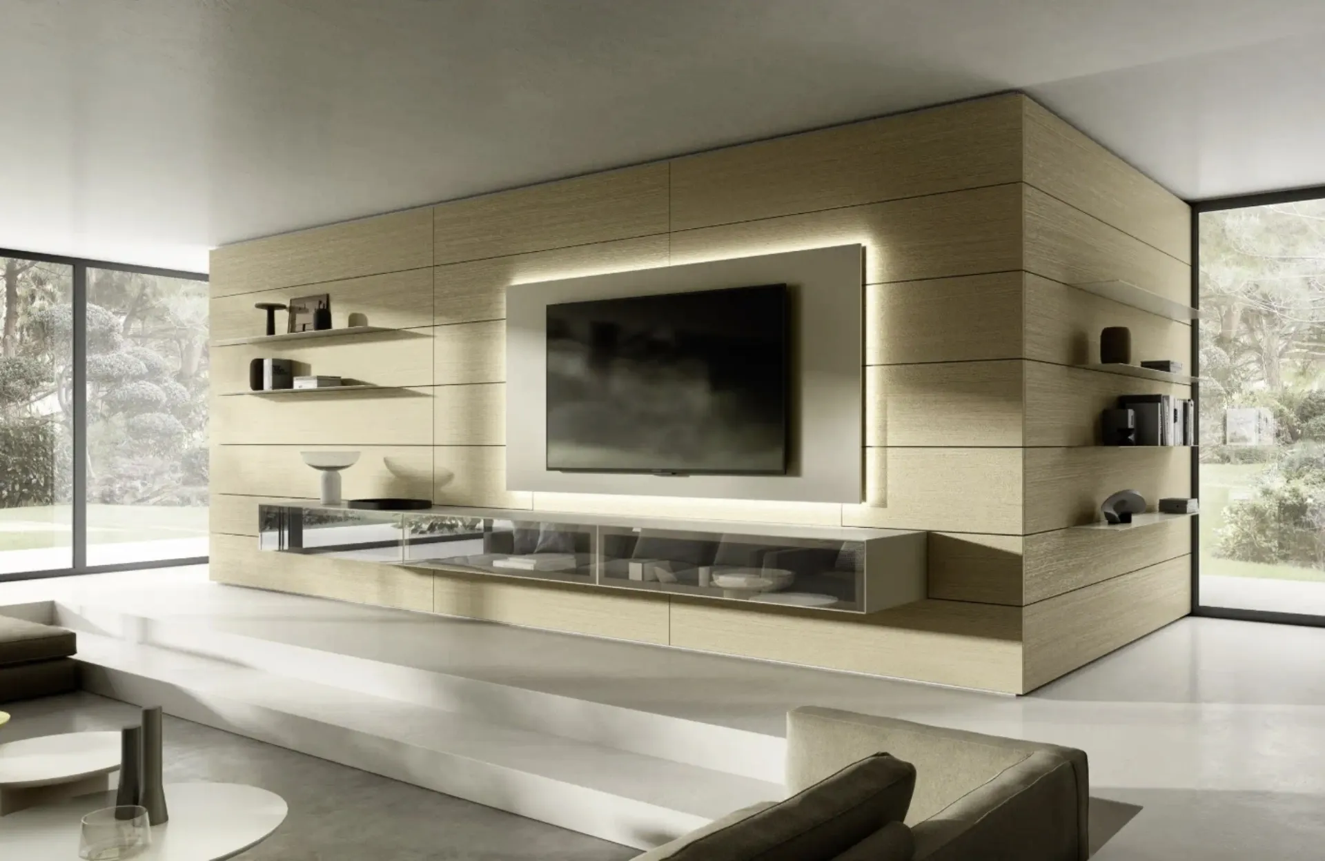 Pareti attrezzate e mobili soggiorno Sangiacomo: clicca e scopri il modello Domino Boiserie 08 e potrai valorizzare stanze moderne di ogni genere.
