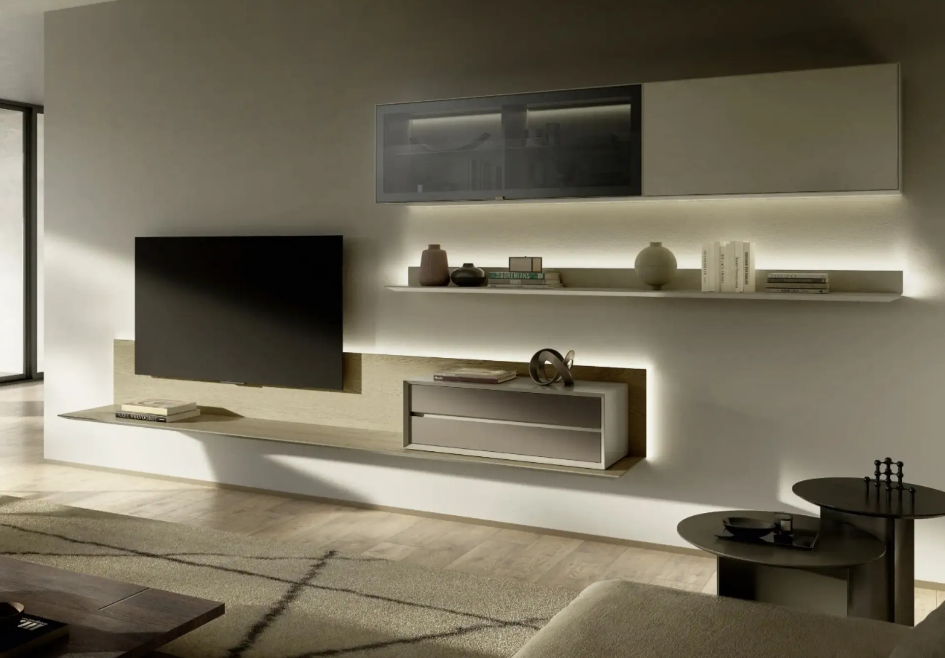 Se desideri completare un soggiorno pratico e operativo dalle linee moderne, ti offriamo la parete attrezzata Domino 02 Sangiacomo.