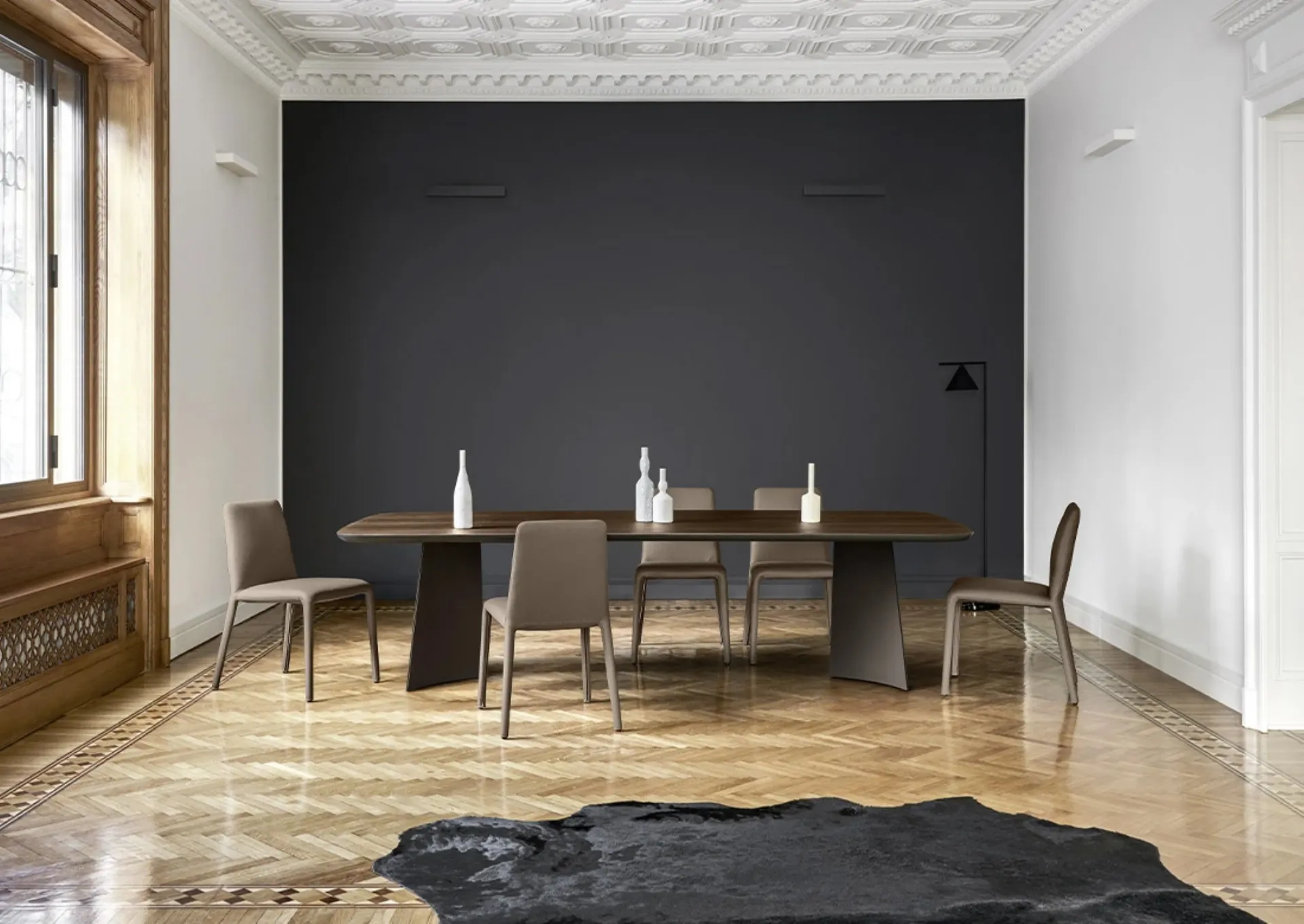 Se cerchi tavoli fissi design, ti presentiamo il modello da pranzo in legno Poliedro Rovere Termotrattato del marchio Sangiacomo.